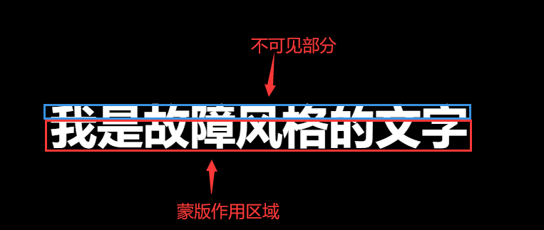 然后设置了蒙版垂直变化动画以后,被蒙版遮挡的部分虽然看不到了,但是会露出下面一层的父元素内容,这样就可以实现了一个完美的故障风格的文字展示动画了。